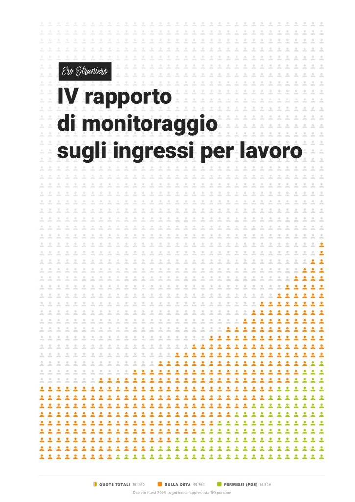 Sono i dati inediti che la campagna "Ero straniero" presenta nel IV rapporto annuale sugli esiti della procedura d’ingresso per lavoro della programmazione flussi triennale 2023-25, aggiornati a dicembre 2025. (fonte: erostraniero.it)