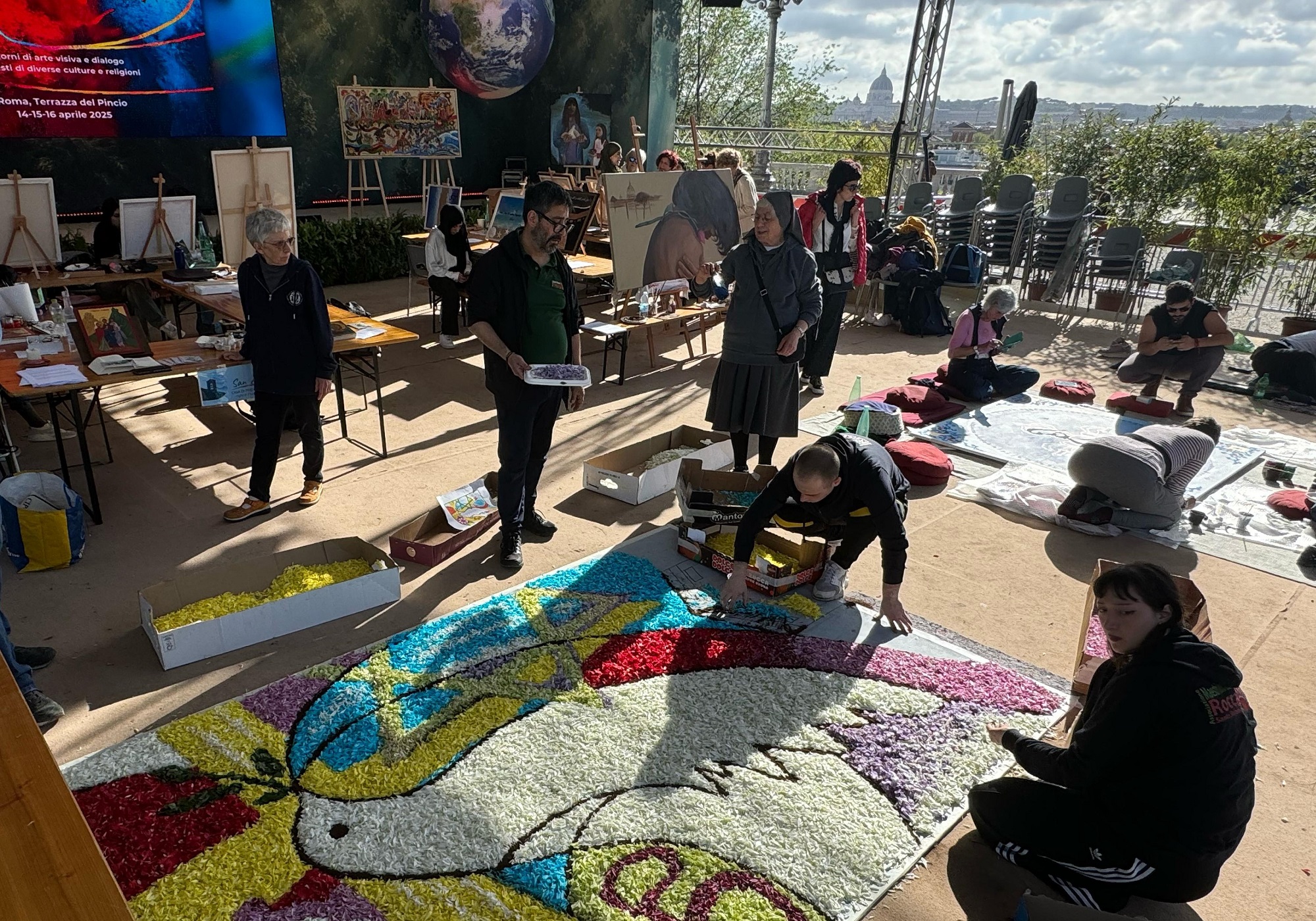 16 Aprile 2025 – A Roma, la Bottega d’Arte: per tre giorni un laboratorio a cielo aperto con artisti di diverse culture e religioni ha animato la Terrazza del Pincio.