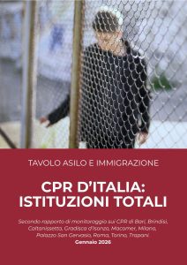23 Gennaio 2026 - Il 28 gennaio 2026 a partire dalle ore 11:30 a Roma (Sala Caduti di Nassirya, Piazza Madama), il Tavolo asilo e immigrazione (Tai) presenta "Cpr d'Italia: istituzioni totali", secondo rapporto di monitoraggio sui Cpr di Bari, Brindisi, Caltanisetta, Gradisca d’Isonzo, Macomer, Milano, Palazzo San Gervasio, Roma, Torino, Trapani.