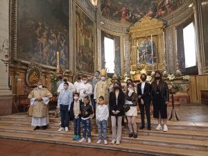 20 Aprile 2022 - Ferrara - Giovani e ragazzi, figli di esercenti del Luna Park, hanno ricevuto, ieri mattina, nella Basilica di Santa Maria in Vado, a Ferrara, il sacramento della Confermazione. A presiedere la liturgia eucaristica l'arcivescovo di Ferrara-Comacchio e presidente della Fondazione Migrantes, mons. Gian Carlo Perego. In questo periodo, in vista della festa di san Giorgio, a Ferrara stazionano diversi operatori dello spettacolo viaggiante. A loro la diocesi, attraverso l'Ufficio Migrantes, ha voluto dedicare una giornata. Ad accompagnarli il direttore Migrantes di Ferrara-Comacchio, il diacono Roberto Alberti e gli operatori pastorali Migrantes Flaviano e Valeria Ravelli e Monica Bergamini. (Raffaele Iaria)
