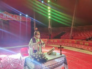 20 Dicembre 2021 - Roma - Una celebrazione eucaristica sotto il tendone del circo Rony Roller a Roma. A presiederla il direttore Migrante della diocesi di Roma e direttore regionale del laio, mons. Pierpaolo Felicolo. A concelebrare don Marco Yaroslav Sehemen, coordinatore nazionale degli Ucraini in Italia.