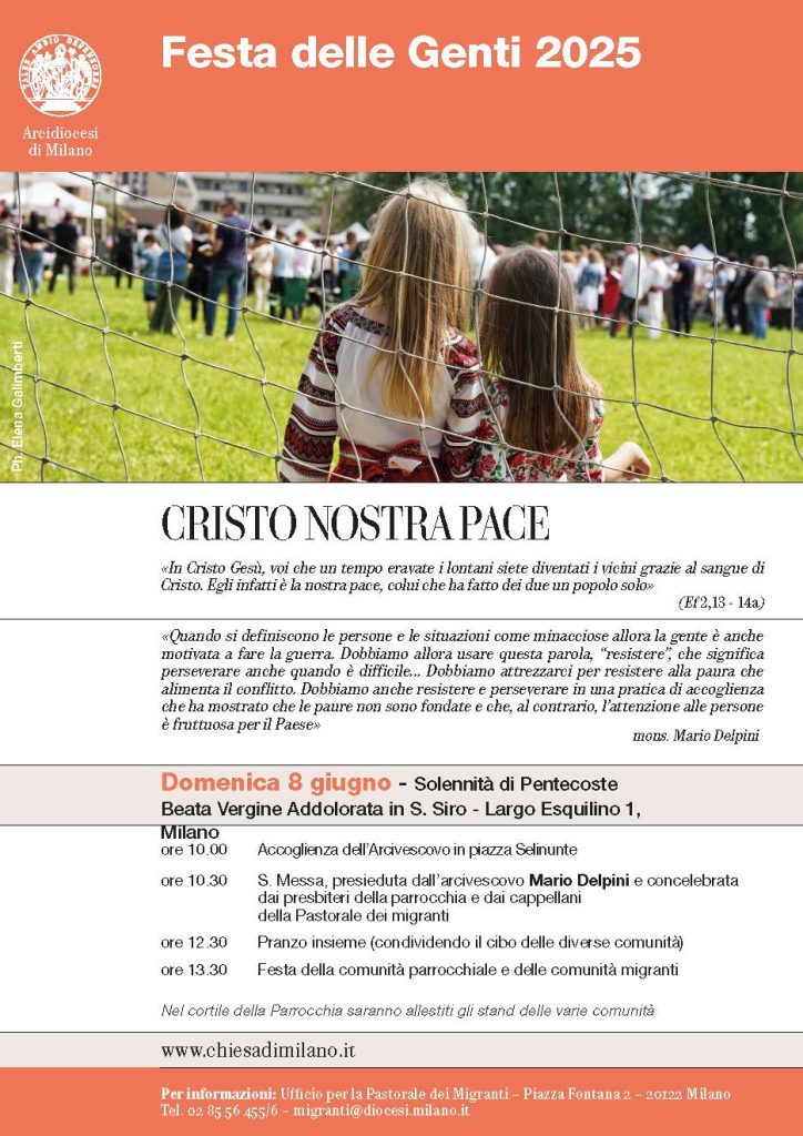 Domenica 8 giugno la Festa delle Genti a Milano: “Genti unite per la pace”